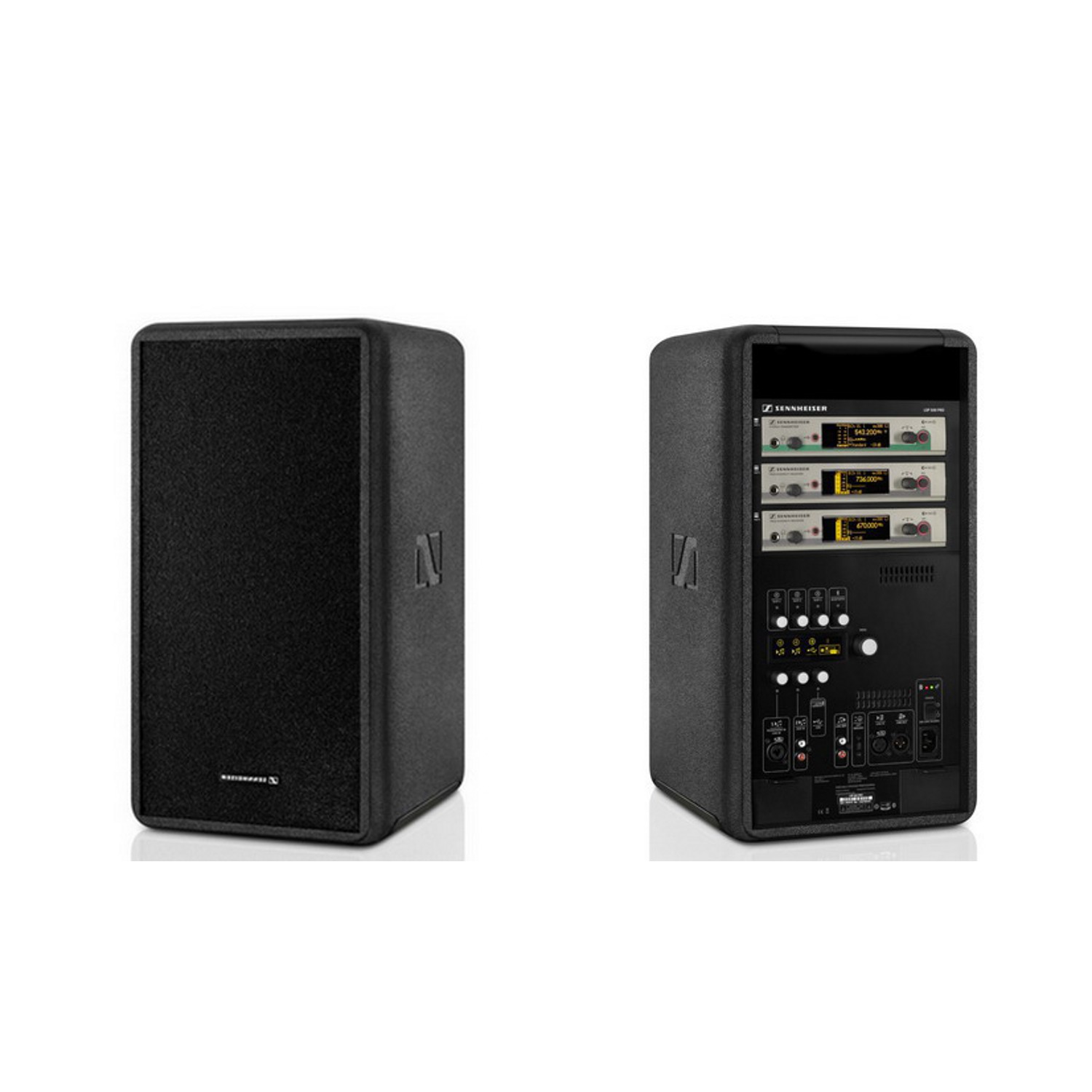 Kabelloser Bluetooth Lautsprecher für Außeneinsätze und flexible Nutzung mit zwei eingebauten Sennheiser EW300 Empfängern und einem IEM Sender zur Weiterleitung des Signals an weitere LSP500.