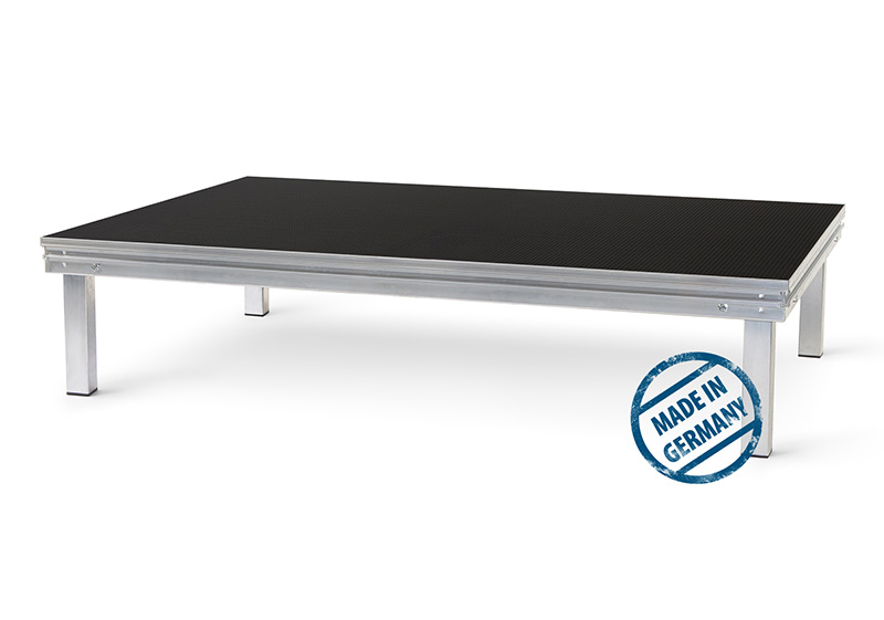 Bühnenelemente mit1000kg pro m² belastbar für Zuschauer / öffentlicher Bereich, wasserfest und daher für den Außenbereich geeignet