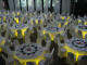 Tische mit weißem Molton umrandet werden. Dieser ist lichtdurchlässiger