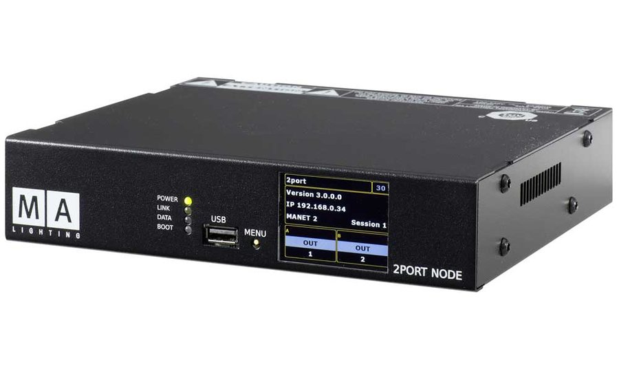 In: 1x XLR (DMX 5 pol.), USB, 1x Ethercon