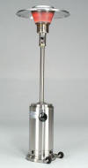 Edelstahl, mit 13KW Heizleistung, Piezozündung, 0,82m Reflektor und regelbarer Wärmeleistung.  Betrieb unter Markisen und Zelten mit einer Höhe von 2,45m möglich.
