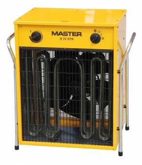 Elektro Heizlüfter Master B22EPB Edelstahl, mit bis zu 22KW Heizleistung. Dank der elektrischen Energieversorgung und Luftverdrängung von 2400 m³/h, verbraucht das Gerät kein Sauerstoff und stößt keine Gase, Dämpfe, Gerüche oder Feuchtigkeit aus, was gut für die Luftqualität im Raum ist.