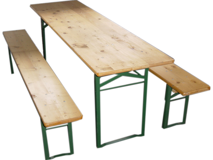 Festzeltgarnitur   Ein Tisch 2,2m x 0,5m und zwei Bänke je 2,2m x 0,25m