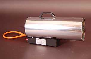 Heizkanone   Heizkanone mit 15 kW Leistung bringt Hallen oder Zelte von ca. 50 m² auf angenehme Temperaturen (Stromanschluss 90 Watt nötig). Heizkanonen sind nicht für geschlossene Räume zugelassen: 25% der gesamten Wandfläche sollten offen sein.