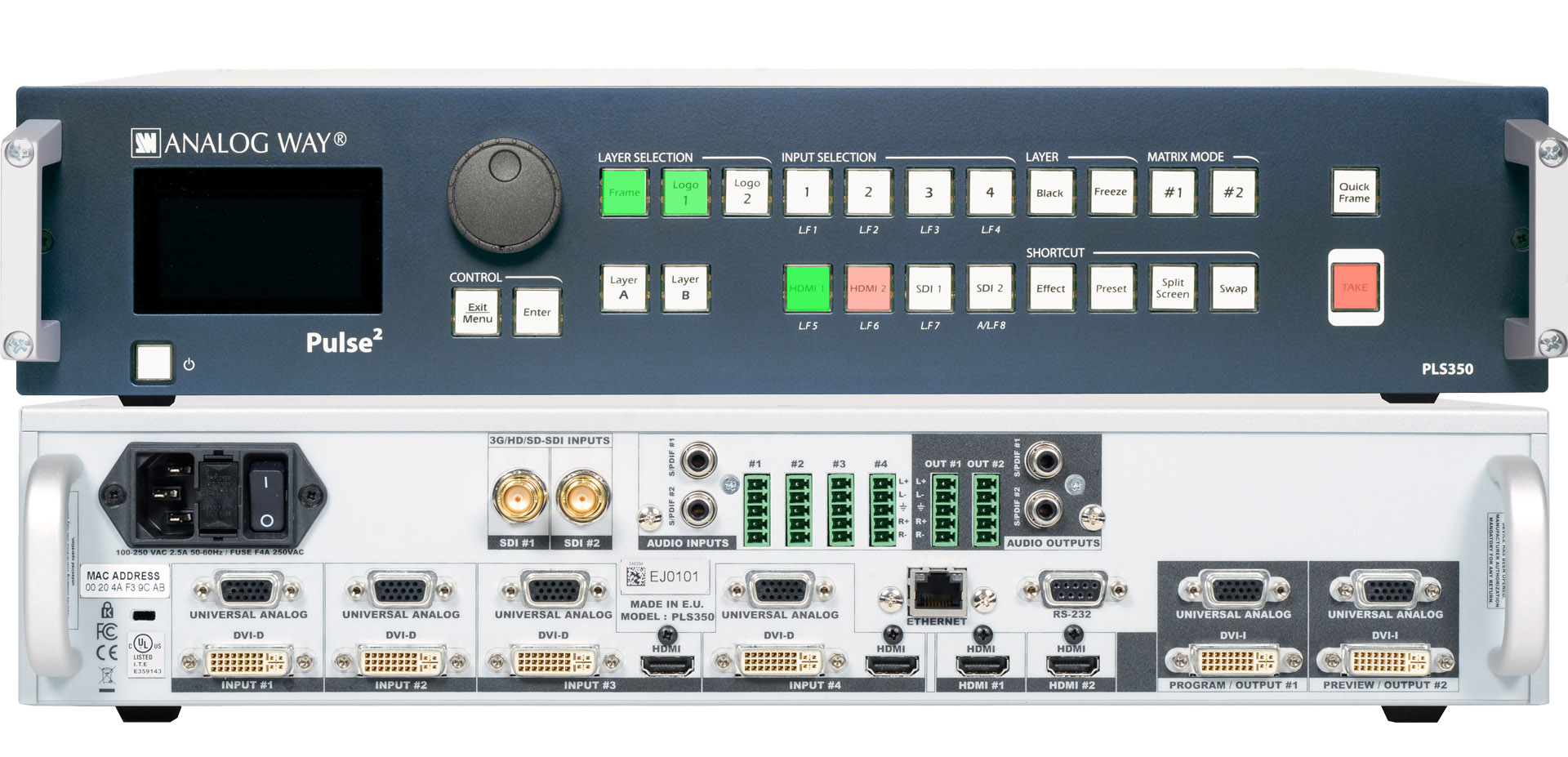 In: 4x HDMI, 4x DVI-D, 2x 3G-SDI,